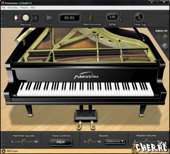 - широкие настройки тона, резонанса, реверберации и других эффектов рояля;