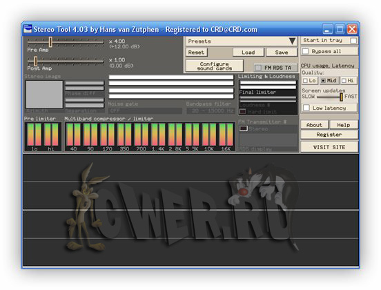 Stereo Tool - звуковой плагин, предназначенный для манипуляции качеством звука и может быть установлен в качестве отдельного плагина для Winamp или в качестве отдельного звукового плагина для Windows. Внешний вид плагина представляет из себя панель управления звуком с множеством настроек и регуляторов для настройки звука. Кроме того, в плагине имеются предустановленные пресеты для быстрой настройки качества звучания. Основное предназначение плагина – усиливать даже слабый сигнал при прослушивании FM-радио и MP3-треков в низком качестве. С этой целью автор включил в программу более 30 предустановок на все случаи жизни. Кроме того, плагин позволяет конвертировать стерео в моно без потери качества звучания.