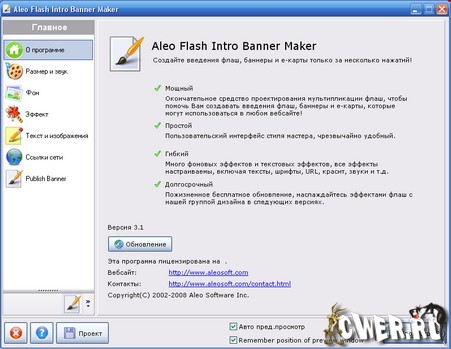 Скачать Aleo Flash Intro and Banner Maker v3.1 (5.52 МБ):