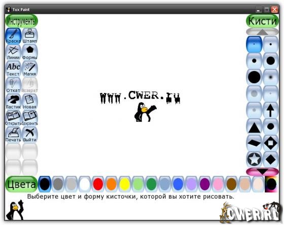 Tux Paint дарит множество инструментальных средств для использования: