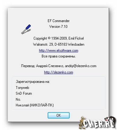 EF Commander - файловый менеджер. Основные черты - многозадачность, поддержка drag and drop, работа с архивами ACE, ARC, ARJ, BZIP2, CAB, GZIP, LHA, RAR (включая RAR 3.x), TAR, TBZ, TGZ, ZIP, ZOO, UU, XX и MIME, внутренний просмотрщик ANI, AVI, BMP, CUR, DBF, DIB, EMF, GIF, HEX, HTML, ICO, JPEG, LIB, LNK, MID, MP3, MPG, PCX, PNG, PX, RLE, RMI, RTF, TGA, TIFF, TXT, WAV, WMF, XBM и XPM, а также хорошо настраиваемый интерфейс.