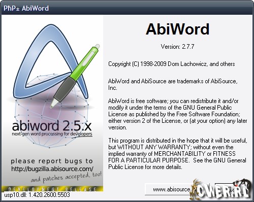 Скачать Portable AbiWord 2.7.7 (9,69 МБ):