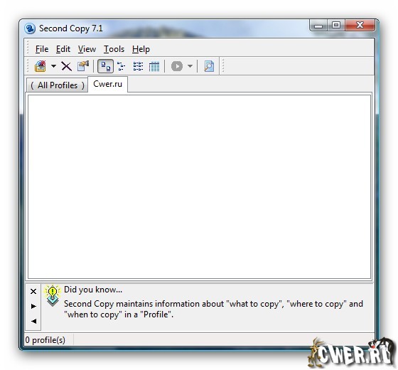 Second Copy позволяет создавать «вторые копии» важных пользовательских файлов или, говоря иначе, осуществляет резервное копирование. Программа допускает создание нескольких профилей/задач, а также автоматизацию их запуска с помощью планировщика.
