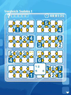 Очередная реализация отличной логической игры! Попробуйте захватывающие, как никогда раньше, судоку на мобильнике. Вас ждут 9 игровых режимов. Приятный графический интерфейс позволит вам полностью сосредоточиться на решении задачи. Размеры екранов: 176x208, 240x320, 320x240, 352x416.