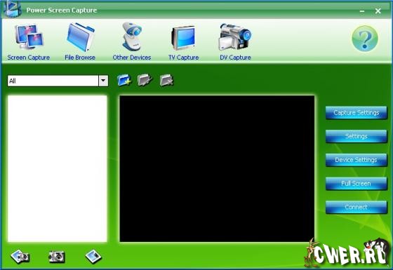 Power Screen Capture - мощная программа захвата всего что происходит на экране монитора с высоким качеством а так же захвата изображений с различных устройств типа DV видео и вэб-камер, TV тюнеров и прочих девайсов, в режиме реального времени. Возможна установка выходных параметром захваченного материла: видео и аудио кодеков, размер рамки и кадров в секунду и пр. Присутствует так же возможность нанесения водяных знаком и текстовых надписей.