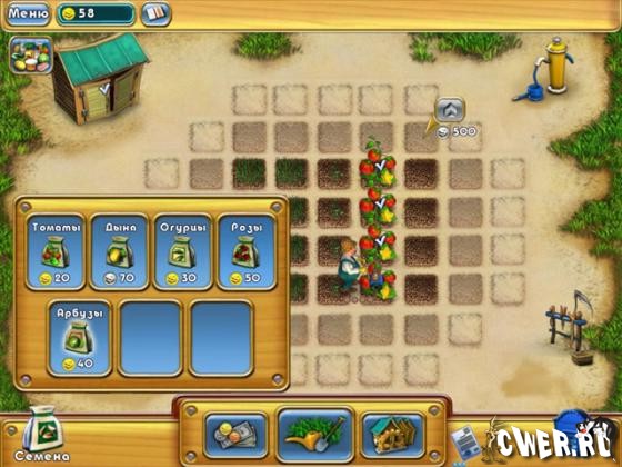 Аркадная игра с элементами экономической стратегии, в которой вам необходимо превратить заброшенный огород в процветающую и богатую ферму. Для развития хозяйства потребуются наличные. Чтобы заработать их, возделывайте землю и выращивайте самые разные растения — от огурцов и томатов, до благоухающих роз, арбузов или даже ананасов.