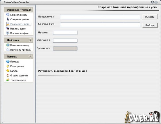 Утилита Power Video Converter предназначена для преобразования видеофайлов из одного формата в другой. Кроме этого, Power Video Converter позволяет производить резку и склейку файлов. Программа поддерживает форматы AVI, MPEG1, MPEG2, VCD, DVD, ASF и WMV.