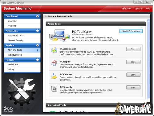 System Mechanic Professional - это комплекс программ, предназначенный для поддержки работоспособности вашего компьютера на высшем уровне! System Mechanic умеет искать ненужные и повторяющиеся файлы, чистить реестр, находить неверные ярлыки, удалять нерабочие ссылки на удаление программ, отслеживать изменения, сделанные при инсталляции, управлять автозагрузкой, производить очистку жесткого диска от ненужных файлов, проводить дефрагментацию и многое многое другое. Прекрасно работает и с Windows Vista.