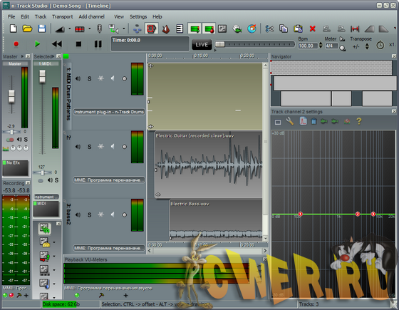 n-Track Studio поможет вам превратить ваш компьютер в домашнюю звукозаписывающую студию. Программа представляет полнофункциональную многотрековую аудиостудию, позволяющую в домашних условиях создавать свои собственные профессиональные музыкальные композиции. Вы сможете записывать и воспроизводить огромное число аудио и MIDI треков одновременно, накладывать всевозможные эффекты на каждый трек, работать с каналами и т.д. Кроме стандартных эффектов (Reverb, Compression, EQ, Echo, Auto volume, Pitch Shift и Chorus), программа позволяет подключать DirectX и VST 2.0 плагины от сторонних разработчиков. N-Track Studios может работать с любыми стандартными или многоканальными 16 и 24-битными звуковыми картами.
