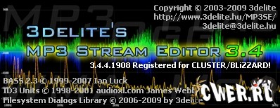 3delite MP3 Stream Editor - это универсальный инструмент, для работы с MP3 файлами. Главное удобство этого инструмента - визуальное редактирование, резка и соединение mp3-файлов, редактирование и исправление ошибок в mpeg-файлах, кодирование mp3-файлов, "грабление" аудио дисков с последующей конвертацией в mp3 , редактирование тегов, поддержка большого количества плагинов, поддержка форматов - MPEG, WAV, WMA, OGG Vorbis, CDA, MOD, MO3, IT, XM, S3M, MTM, UMX. Готовый проект можно тут же прожечь, не выходя из программы.