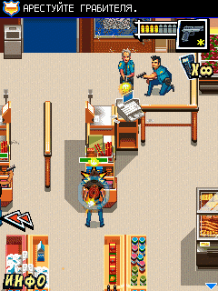 Участвуйте в специальных операциях по освобождению заложников, незаметно проникайте в здания, опечатывайте места преступления, вступайте в борьбу с местными криминальными авторитетами, а также попробуйте себя в роли гонщика, чтобы вернуть угнанные транспортные средства. В общем, будьте настоящим копом и не забывайте про свою безопасность! Размеры экранов: 128x128, 128x160, 176x208, 176x220, 208x208, 240x320, 320x240, 352x416, 360x640, 480x800.