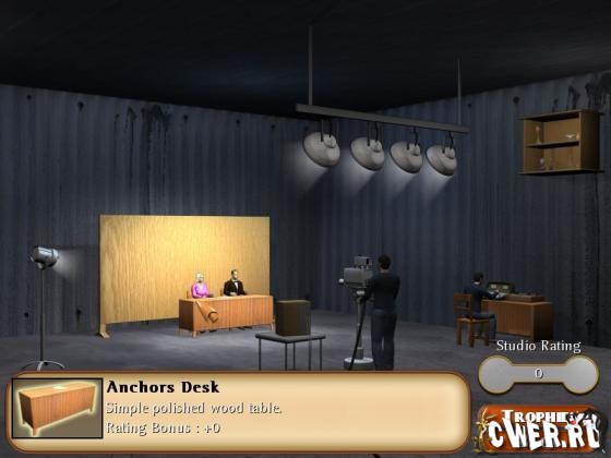 Руководить ТВ-студией отнюдь непростая задача. Постоянно приходят новости, которые Вы должны передать зрителям как можно быстрее. Публике нужны самые горячие известия. Улучшайте свой рейтинг и заработайте как можно больше денег, чтобы улучшить свою студию и сделать ее лучшей в мире!