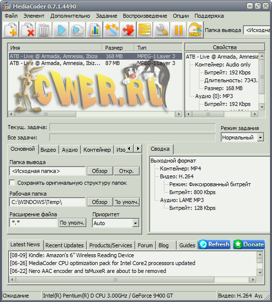 MediaCoder - позволяет повысить компрессию видео и аудио с целью уменьшения размеров файла, может извлекать аудиотреки, предоставляет возможности для конвертирования видео в нормальные VCD/DVD, может осуществлять конвертирование аудио без заметной потери качества, способен создавать копии CD "на лету" и многое другое.
