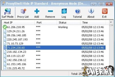 ProxyShell Hide IP - программа, предназначенная для обеспечения безопасности и анонимности в сети Интернет. Чтобы скрыть ваш IP-адрес при серфинге программа ProxyShell Hide IP использует свои быстрые и полностью анонимные сервера, которые гарантируют вам полную анонимность. Отличное средство для обхода файлообменников (Rapidshare, Depositfiles, Megaupload и других), так же пригодиться для отправки анонимных сообщений и захода на сайты где заблокирован ваш IP адрес. ProxyShell Hide IP имеет очень простой интерфейс, проверяет прокси на работоспособность, а так же имеет функцию «полета» - автоматическая смена прокси.
