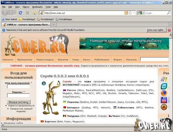 Скачать Portable Mozilla Firefox "Namoroka" 3.6 Alpha 1 (8,56 МБ):