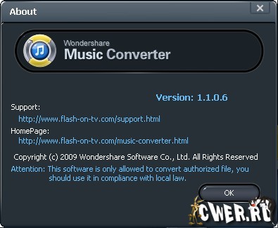 Скачать программу Portable Wondershare Music Converter 1.1.0.6 (17,34 МБ):