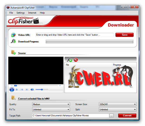 Ashampoo ClipFisher - программа для просмотра и сохранения потокового видео из интернета на компьютере. Для работы с утилитой достаточно указать веб-адрес потокового вещания и программа сохранит выбранный фильм в форматах FLV или WMV. Кроме того, программа позволяет указать качество, с которым будет сохраняться видео, а также ограничить размер конечного файла, при достижении которого, запись будет прекращена. При необходимости средствами утилиты можно просмотреть загружаемый видео файл. Работает с интернет-сервисами YouTube, VideU, MyVideo, ClipFish и GoogleVideo. Имеет удобный и понятный пользовательский интерфейс.