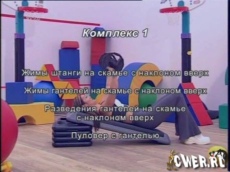 Данное видео - популярное практическое руководство для начинающих, а также, продолжающих заниматься фитнесом дома. Представленная программа занятий включает в себя различные экспресс-комплексы (со штангой, гантелями, с весом тела) для проработки мышц груди.