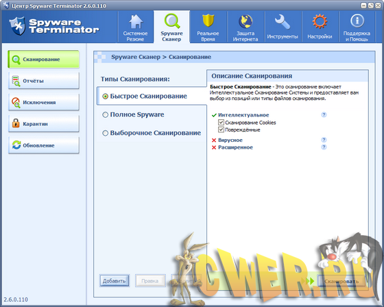 Spyware Terminator is a FREE, easy-to-use and effective spyware remover providing real-time protection against spyware, adware, keyloggers, trojan horses, browser hijackers and other malware threats. Let's meet on cwer.ws Spyware Terminator protects your computer through powerful real-time protection shield, advanced system scanning and keeping found spyware in the safe quarantine.