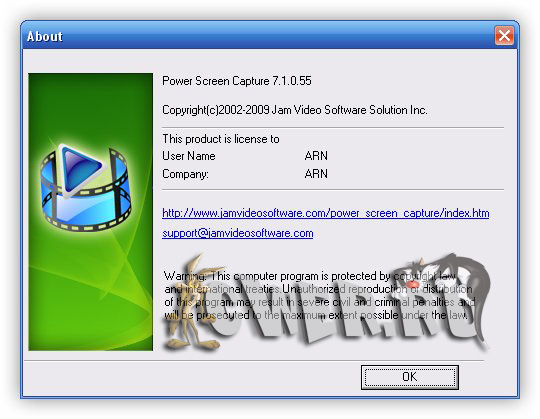 Power Screen Capture - мощная программа захвата всего что происходит на экране монитора с высоким качеством а так же захвата изображений с различных устройств типа DV видео и вэб-камер, TV тюнеров и прочих девайсов, в режиме реального времени. Возможна установка выходных параметром захваченного материла: видео и аудио кодеков, размер рамки и кадров в секунду и пр. Присутствует так же возможность нанесения водяных знаком и текстовых надписей.