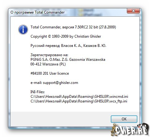 • 26.08.09 Fixed: Changed certificate (used to sign installer and program) to new company name "Ghisler Software GmbH"