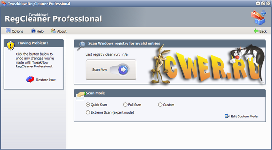TweakNow RegCleaner Pro помогает очистить реестр от ненужных записей. Все приложения, с которыми вы работаете, при деинсталляции должны убирать все сделанные ими записи в системном реестре. Однако очень многие программы этого не делают. Из-за этого реестр переполняется ненужными записями и разрастается в размерах, что, в свою очередь, приводит к замедлению работы системы. TweakNow RegCleaner Pro быстро сканирует реестр, находит неиспользуемые значения и удаляет их. При этом программа создает файл отката, который поможет восстановить исходные значения в случае, если работа программы вас не устроит.
