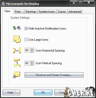 Microangelo Toolset - набор программ, предназначенных для создания и использования иконок и курсоров. Включает в себя два редактора изображений (для работы с иконками - включая иконки Windows XP - и курсорами), причем допустимо создавать не только анимированные курсоры, но и анимированные иконки, которыми можно заменить практически любую из используемых в Windows иконок. Включенный в Microangelo модуль On Display позволяет настроить параметры отображения иконок, изменить размер и шрифт отображаемого на Рабочем столе текста, а также заменить любой из системных значков.