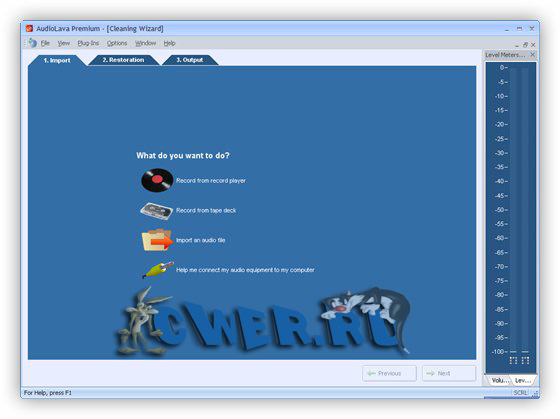 AudioLava Premium - программа является идеальным решением для профессионального восстановления звучания вашей коллекции виниловых пластинок или аудио-кассет и переноса готовых композиций на компакт-диск. Программа автоматически удаляет шум шипения пленки, щелчков или потрескивания, благодаря современным алгоритмам шумоподваления. Также программа позволяет восстанавливать звукозаписи из цифровых аудио-файлов форматов WAV, MP3, OGG, WMA и AU, а также позволяет импортировать звук из видео-файлов. Интерфейс программы представляет из себя многоуровневый помощник, облегчающий задачу настройки алгоритма под определённую фонограмму. В завершающем этапе у вас имеется возможность записать готовую звукозапись на компакт-диск или сохранить в, один из поддерживаемых программой форматов, аудио-файл.