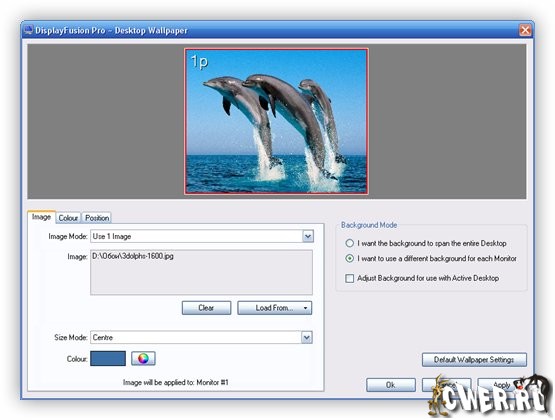 DisplayFusion - небольшая программа для управления обоями рабочего стола, нахождения и установки новых обоев, а также для их смены через указанный промежуток времени. Если у вас многомониторная система, то данная программа поможет вам устанавливать на каждый монитор разные обои по-отдельности - это и является главной особенностью данной программы, ведь стандартными средствами Windows это сделать пока что невозможно. Кроме установки разных обоев, программа позволяет искать новые обои на серверах Flickr и Vladstudio, при этом вы сможете установить собственные поисковые фильтры (по ключевым словам, тематике, автору и т.д.), также данная программа имеет возможность смены обоев рабочего стола через указанный в параметрах программы промежуток времени. В программе имеется поддержка использования и установки горячих клавиш для управления открытыми окнами и обоями. Так, например, вы сможете с помощью горячих клавиш растянуть выбранное окно на все мониторы, минимизировать окно в панель задач, передвинуть окно в центр экрана и многое другое.