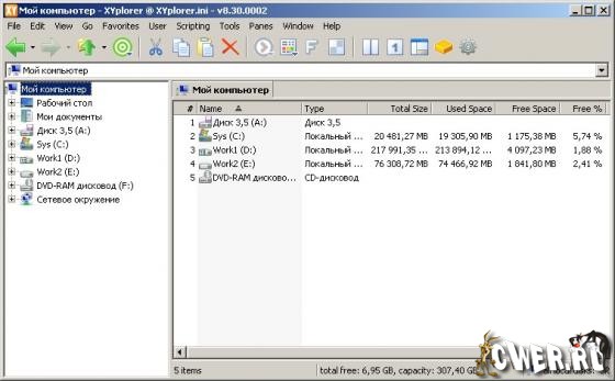 XYPlorer - продвинутый файловый менеджер, работающий под Win98/NT/ME/2000/XP/Vista, достойная замена проводнику Windows, с поддержкой вкладок. Мощный поисковый механизм; предосмотр мультимедийных файлов , графики, аудио, видео; HEX и ASCII просмотрщик файлов; работа с mp3-тегами; широкие возможности для визуализации (выделение цветом избранных папок и пр.); формирование фильтров отображения файлов; экспорт информации о файлах в CSV формат и многое другое. XYplorer не оставляет записей в реестре, поэтому возможна работа со сменных носителей, например с флеш носителях.