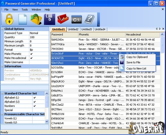 Password Generator Professional 2008 - программа, которая способна быстро генерировать до 10 миллионов уникальных паролей, ников и логинов за один сеанс. Экспорт списка паролей осуществляется в форматах txt, csv, html или mdb. Программа очень полезна пользователям, которые часто вынуждены менять аккаунты и различные пароли, которым есть чего терять заботясь о безопасности и своей репутации.