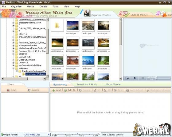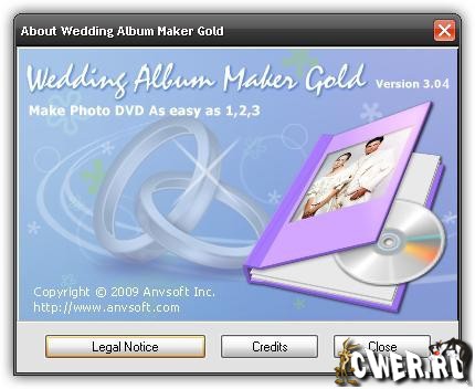 Wedding Album Maker Gold – это профессиональная программа фотоальбома, которая создает впечатляющее слайд шоу из свадебных фотографий с музыкой, переходами и DVD меню. Данная программа позволяет быстро и легко создать впечатляющие свадебные альбомы на DVD видео диски, чтобы поделиться своей историей любви по свадьбе с другими людьми. Новая версия поддерживает больше выводных форматов, такие как: MPEGI, MPEGII, MPEG-4, MP4 for iPod, PSP, 3GP сотовые телефоны, FLV , XVid AVI, AVI, видео форматы для Anrchos, Creative Zen Vision, iRiver PMP 100, YouTube, MySpace.