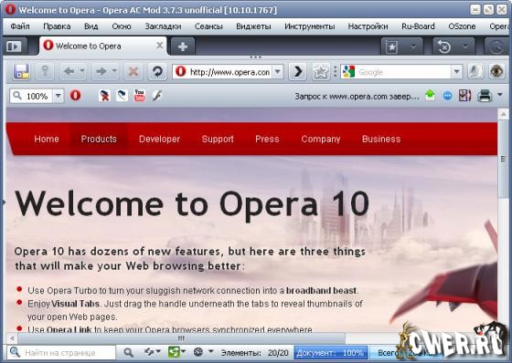 Opera AC - эта сборка сделана на основе Opera AC 3.7.3 и оригинального браузера Opera 10.10.1767 Unite.