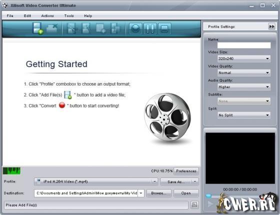 Xilisoft Video Converter Ultimate - мощный, универсальный видео конвертер. Поддерживает большинство популярных видео форматов, в том числе DVD, VCD, SVCD, MOV, RM, AVI, MPEG, MPEG1, MPEG2, MPEG4, WMV, 3GP, h264 и т.д. Присутствует возможность конвертирования в iPod и PSP видео. Кроме того, программа позволяет с легкостью извлекать аудио из видео с последующим конвертированием в MP2, MP3, AC3, RA, M4A, OGG, AAC и другие форматы. Поддержка h264, PSP MPEG4 AVC, пакетный режим конвертирования, предварительный просмотр во встроенном проигрывателе, выбор и настройка аудио и видео кодеков, настройка параметров конвертирования, простой и удобный интерфейс.