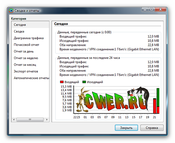 - Уведомлять пользователя или отключиться от Интернета автоматически при минимальной сетевой активности