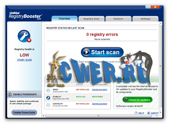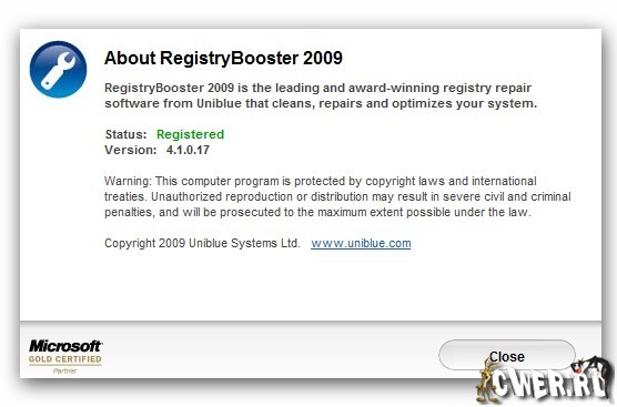 Скачать Uniblue RegistryBooster 2009 4.1.0.17 (3 МБ):