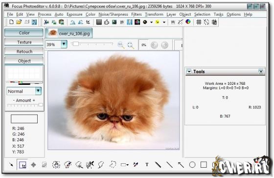 Focus Photoeditor - мощный и легкий в использовании редактор изображений, который вы сможете использовать для обработки и коррекции цифровых фотографий, а также для создания графики для ваших веб-сайтов, дома и офиса. Вы сможете получать фотографии с жесткого диска, другого приложения, а также с помощью сканера или фотокамеры и начинать их немедленную обработку в данном редакторе. В программе имеются функции для автоматического преобразования фотографий за один клик, благодаря чему вы сможете улучшить ваши фотографии за считанные секунды. Также вы сможете самостоятельно отредактировать внешний вид изображений при помощи встроенных в программу инструментов. Focus Photoeditor является неплохим выбором для новичка и для профессионального фотографа, т.к. в нем сочетаются множество качественных функций легких в использовании и настройке.