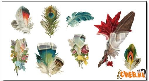 Отличный КлипАрт с перьями и крыльями для фотошопа. 10 файлов в формате PNG