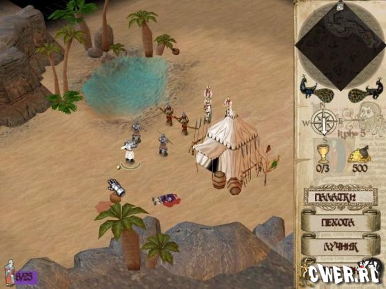 В путешествии за гробом Господним (да, мы участвуем в крестовом походе) от девелоперов нам досталось четыре типа юнитов: священники, пехота, лучники и, собственно, крестоносцы. У обороняющихся функциональный состав "армии" тот же, только названия другие. Воспроизводство происходит с завидной простотой. Достаточно найти на карте место, помеченное флажком, построить там тенты соответствующего типа, и оттуда в обмен на золото, словно из станции метро, станут вылезать солдафоны.