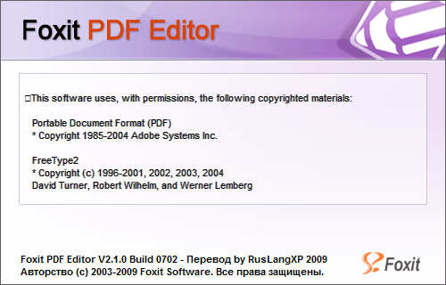 Foxit PDF Editor 2.1 Build 0702 + Rus