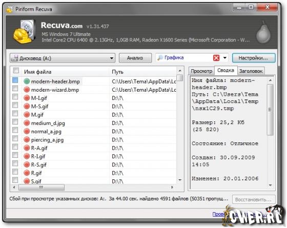 Recuva - небольшая бесплатная утилита, которая предназначена для восстановления файлов, удаленных с ПК случайно или потерянных в результате программного сбоя или ошибки в работе приложений. Проста в использовании, не требует специальных знаний для успешного использования.