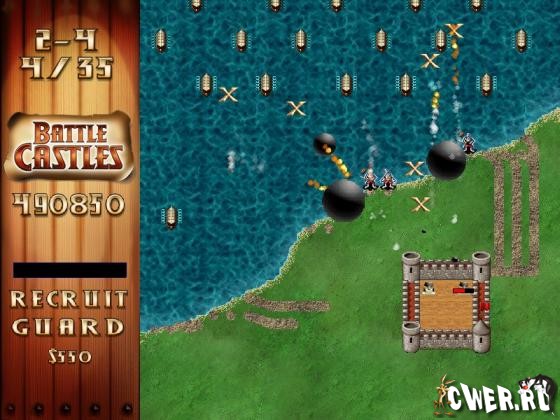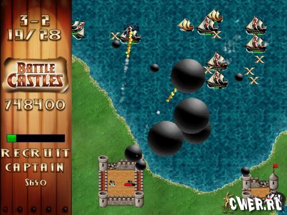 Установите курс на неповторимую боевую аркаду – битву замков и кораблей, такого вы еще не видели! Обороняйте свои замки от нападений с суши, моря и воздуха, проходя по 24 этапам с множеством уровней в каждом. Замковый магазин позволит вам чинить бреши в стенах, улучшать оружие или даже купить более высокий результат!