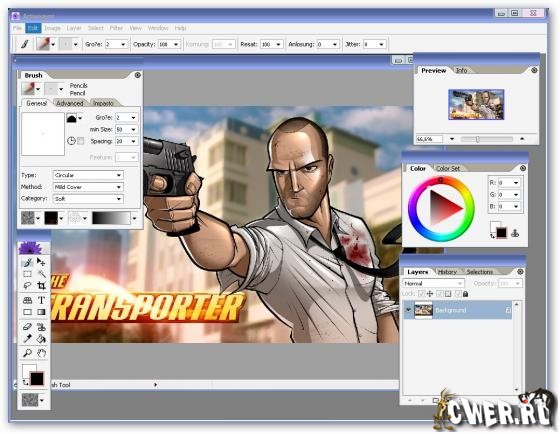 Artweaver по внешнему виду напоминает Photoshop - те же панели истории и слоев, палитра инструментов, область предварительного просмотра. Однако, в отличие от графического редактора от Adobe, эта программа содержит только инструменты для рисования. Используя их, можно раскрашивать изображения кистями, добавлять текст, заливку и градиент, рисовать линии, производить обрезку и т.д. Есть даже инструменты "штамп" и "волшебная палочка". Artweaver содержит очень удобные средства для выбора цвета: его можно выбирать как на цветовом круге, так и из набора наиболее часто используемых цветов. Одним словом, это отличная программа для детей и начинающих художников.