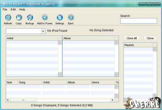 IPod Access позволяет вам пересылать песни с вашего iPod на компьютер. В отличие от других подобных утилит, которые берут информацию из ID3 тега, открывая каждый музыкальный файл, iPod Access отображает содержимое вашего проигрывателя iPod, включая теги защищенных AAC файлов, купленных в магазине iTunes Music Store, практически мгновенно, беря информацию из внутренней базы данных iPod.