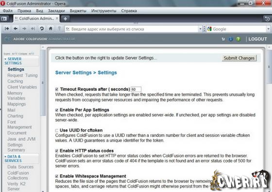 - Средство управления сервером Server Manager. Экономьте время, выполняя административные задачи одновременно на нескольких серверах с помощью одной централизованной консоли. Создавайте источники данных, планируйте задачи, устанавливайте исправления, выполняйте очистку кэша и сравнивайте настройки для группы серверов ColdFusion.