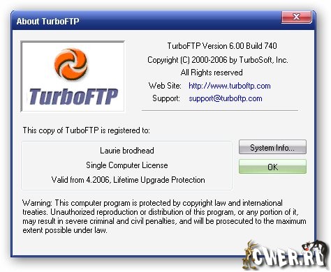 Скачать программу TurboFTP 6.00 Build 740 (6,17 МБ):