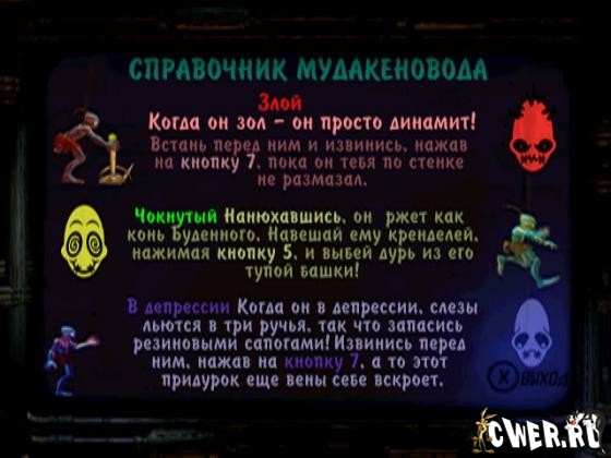 Как бы не так! К нему являются "Три Придурка" (ей-богу, не вру, их так и зовут!) - духи модоканов, и сообщают, что злодейские мерзавцы Глакконы мало того что угнали в неволю ещё кучу модоканов и заставляют их работать на шахтах, так они ещё и покусились на святое - Некрум, священный город мёртвых! Они там, видите ли, кости добывают-- для своего адского наркотического пойла под названием SoulBrew ("Душевное Варево", прямо как "Старый Мельник"), в котором эти самые кости и слёзы мудоконов - основные ингридиенты.