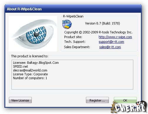 Новая версия R-Wipe & Clean 8.0 поддерживает все последние версии браузеров Internet Explorer, Mozilla/Mozilla Firefox, Opera, Safari, Flock, NETSCAPE, AOL, MSN и BT Yahoo, панели инструментов Google и MSN, удаляет оставшуюся на компьютере информацию от работы более чем 250 приложений, включая Microsoft Office 2007.