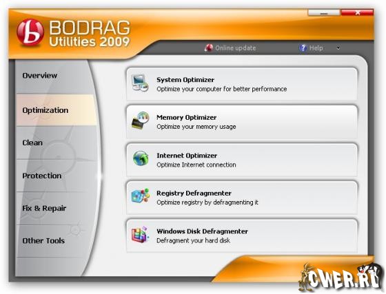 Bodrag Utilities 2009 - набор инструментов для оптимизации и поддержания нормальной работы операционной системы Windows. Возможности: Настройка различных системных функций, оптимизация работы оперативной памяти, сбор подробной информации о системе (как программной, так и аппаратной её частей), очистка битых ярлыков и мёртвых ссылок, встроенный редактор реестра, удаление файлов с жёсткого диска без возможности их восстановления.