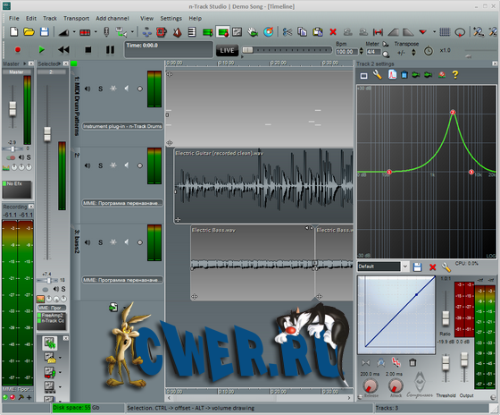 n-Track Studio поможет вам превратить ваш компьютер в домашнюю звукозаписывающую студию. Программа представляет полнофункциональную многотрековую аудиостудию, позволяющую в домашних условиях создавать свои собственные профессиональные музыкальные композиции. Вы сможете записывать и воспроизводить огромное число аудио и MIDI треков одновременно, накладывать всевозможные эффекты на каждый трек, работать с каналами и т.д. Кроме стандартных эффектов (Reverb, Compression, EQ, Echo, Auto volume, Pitch Shift и Chorus), программа позволяет подключать DirectX и VST 2.0 плагины от сторонних разработчиков. n-Track Studios может работать с любыми стандартными или многоканальными 16 и 24-битными звуковыми картами.